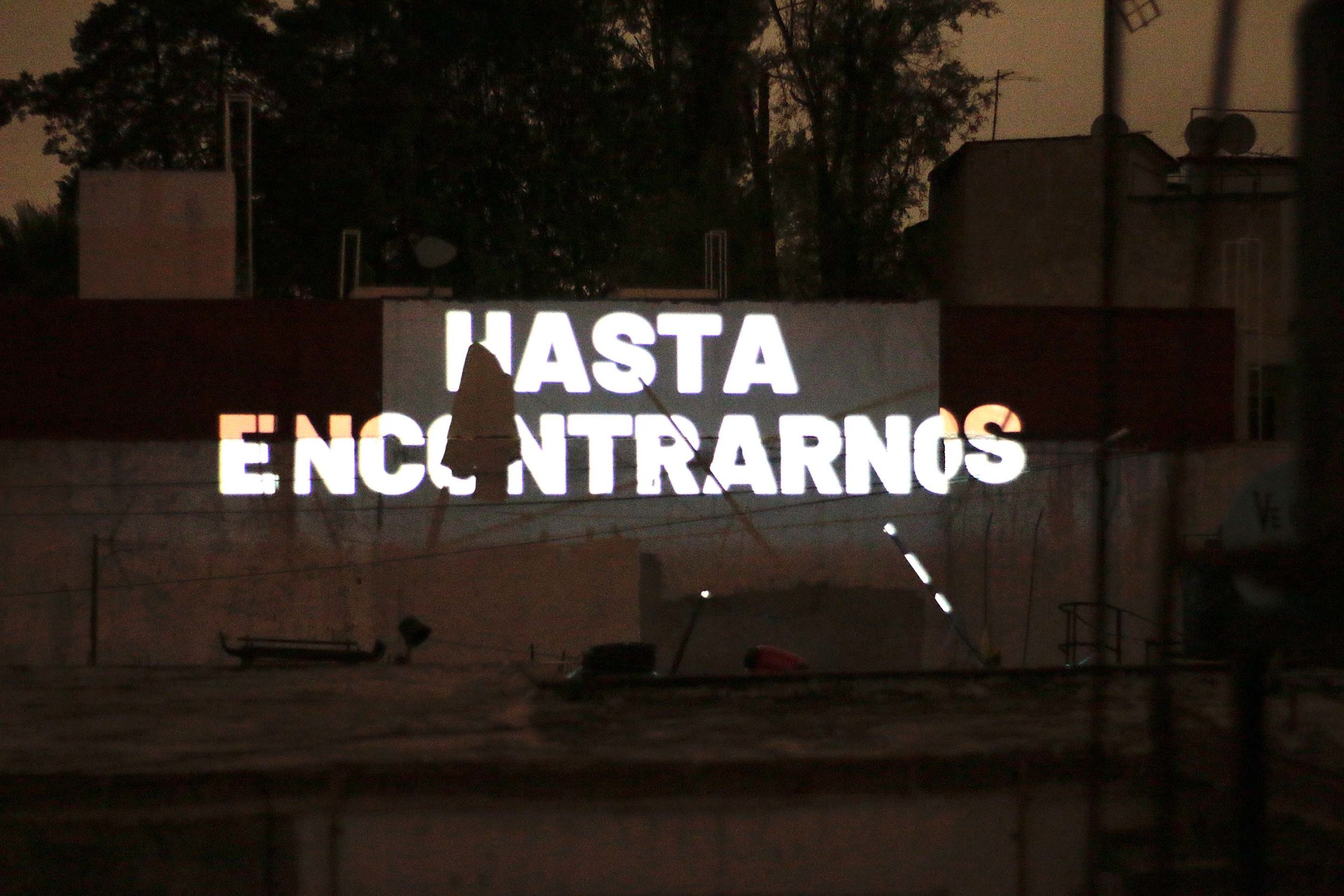 En esta intervención artística proyecto la frase Hasta encontrarnos en las calles porque siento que el encuentro es mutuo: queremos encontrar a la persona desaparecida y también a ese algo de nosotros que se fue con ella. Esta frase es una alusión a la consigna «Hasta encontrarlos», enunciada por familiares de las y los desaparecidos en Colombia y México.